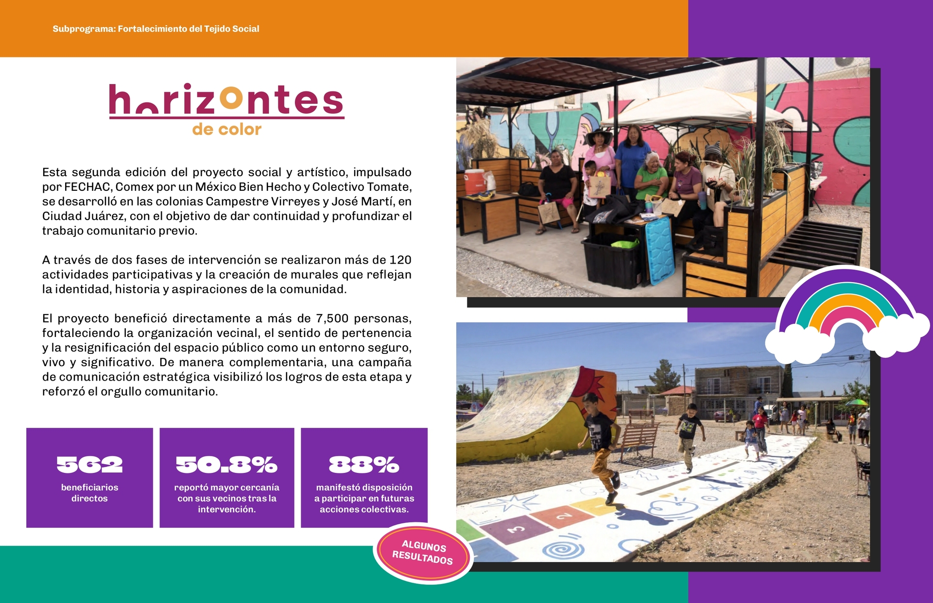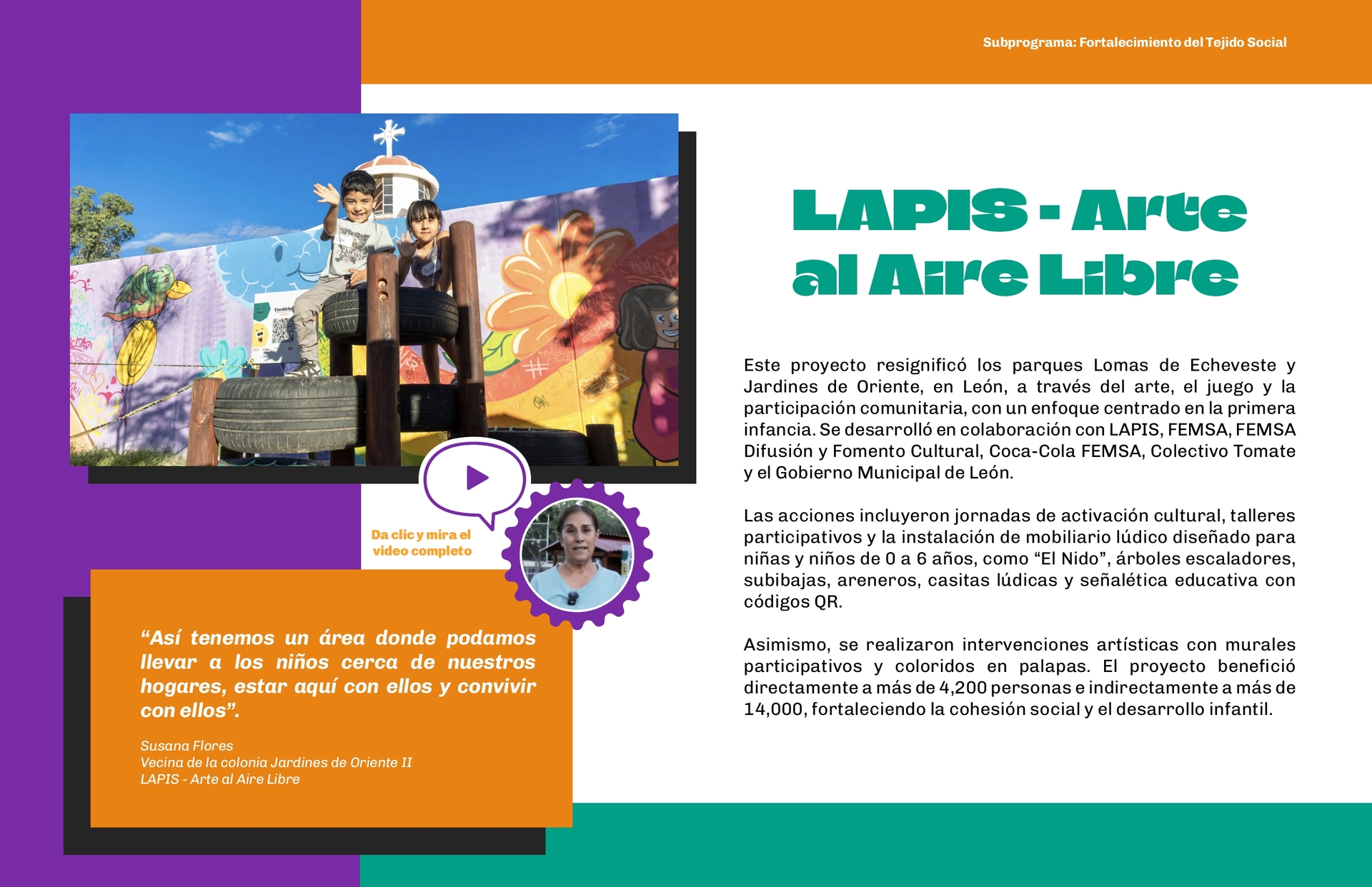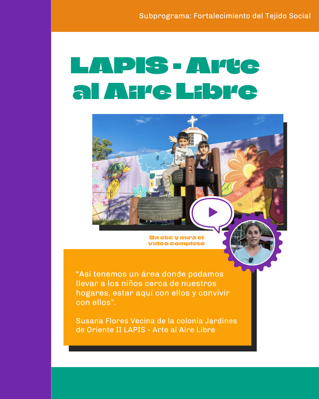 Cada proyecto representa procesos de encuentro, diálogo y construcción colectiva que fortalecen el tejido social y promueven la apropiación positiva del entorno.