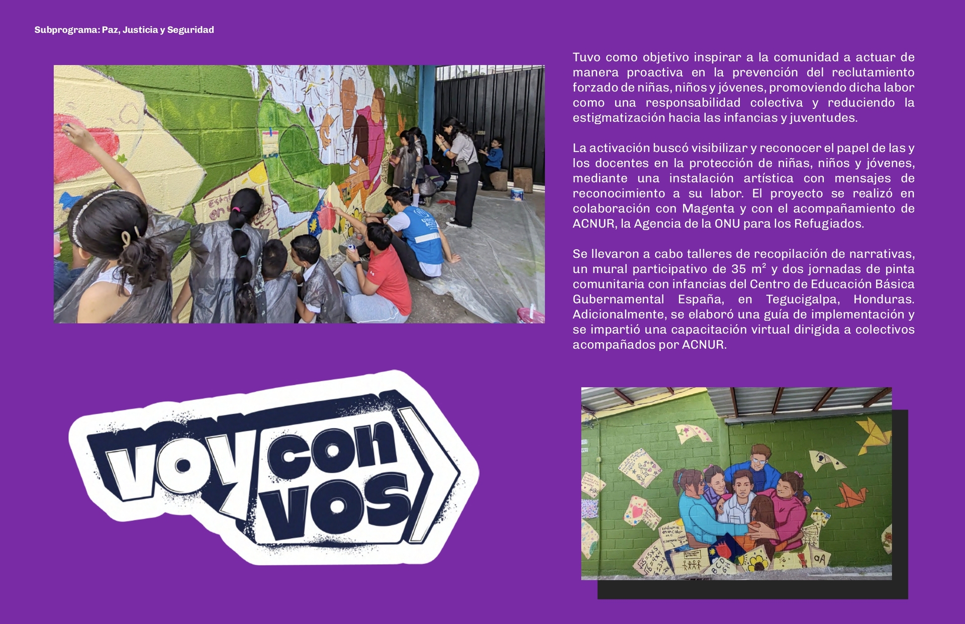 «Voy con vos» acompañó a una comunidad educativa en Tegucigalpa, Guatemala, para promover la prevención del reclutamiento forzado de niñas, niños y jóvenes desde la acción colectiva.