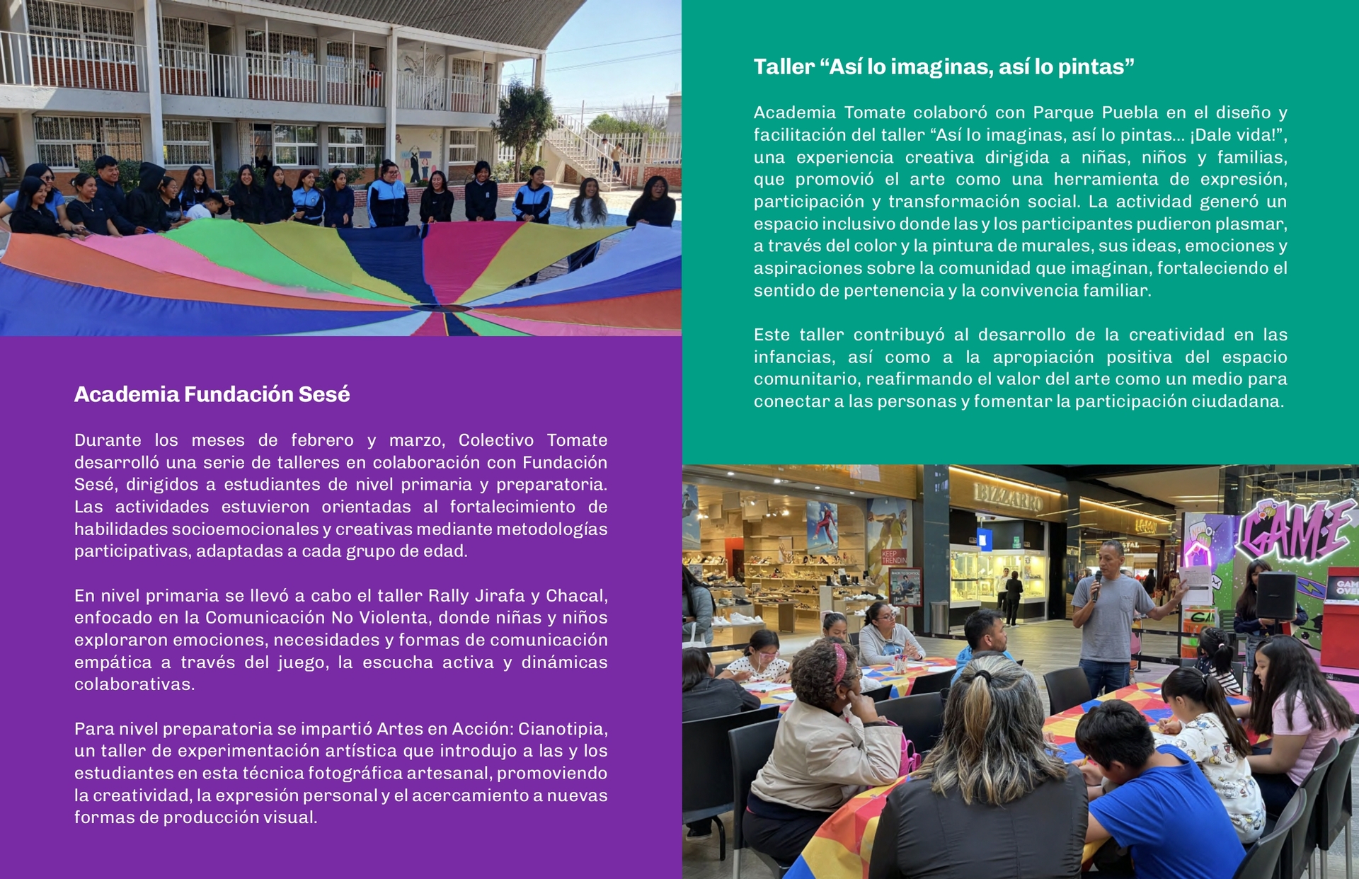 El equipo de Colectivo Tomate llevó a cabo un proceso de planeación estratégica a cinco años para revisar su misión, visión y objetivos, identificar aprendizajes y definir líneas de acción que fortalezcan su metodología, amplíen el impacto comunitario y consoliden su sostenibilidad a largo plazo.